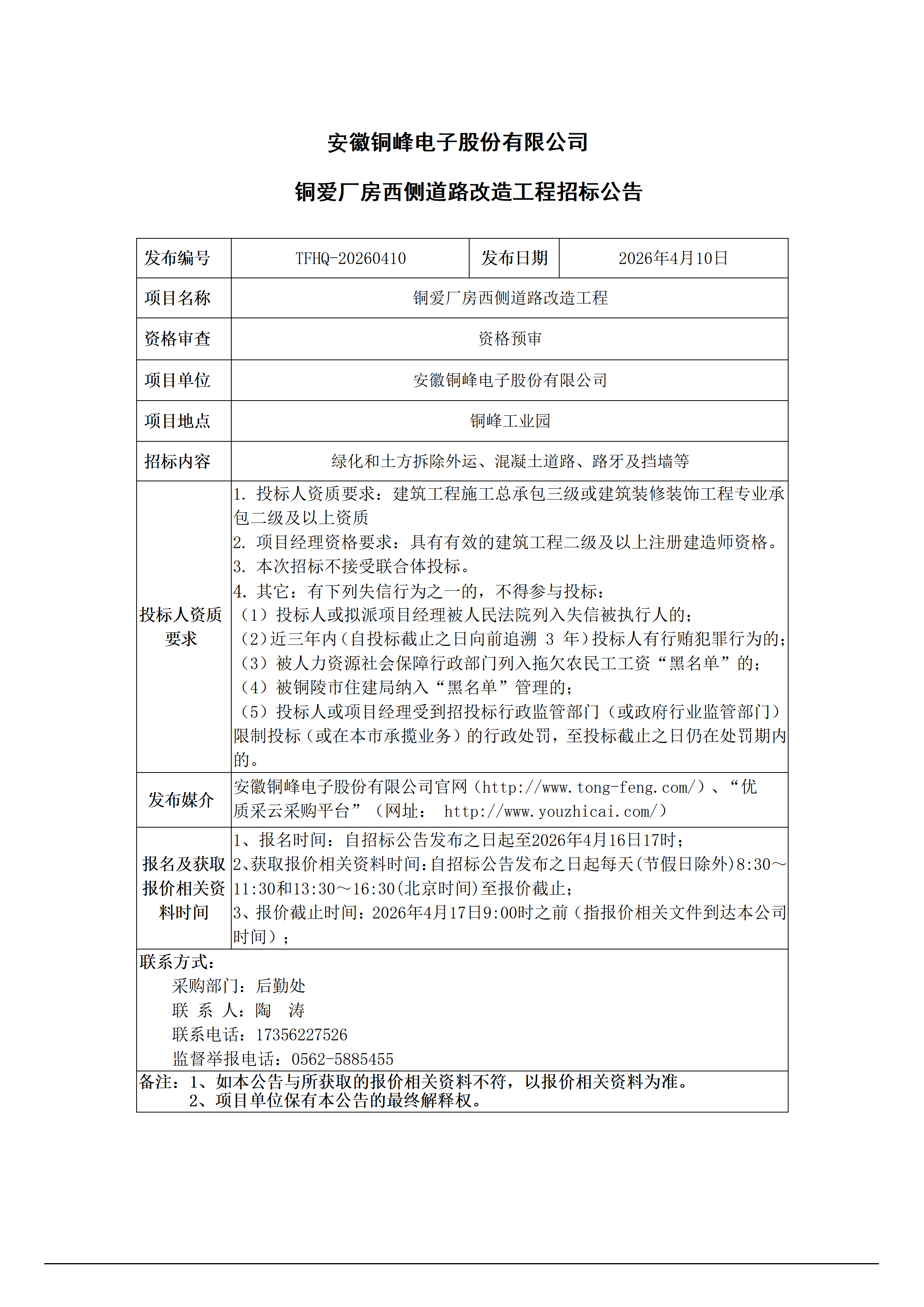 01-安徽銅峰電子股份有限公司 (銅愛廠房西側道路改造-- 招標公告)_01