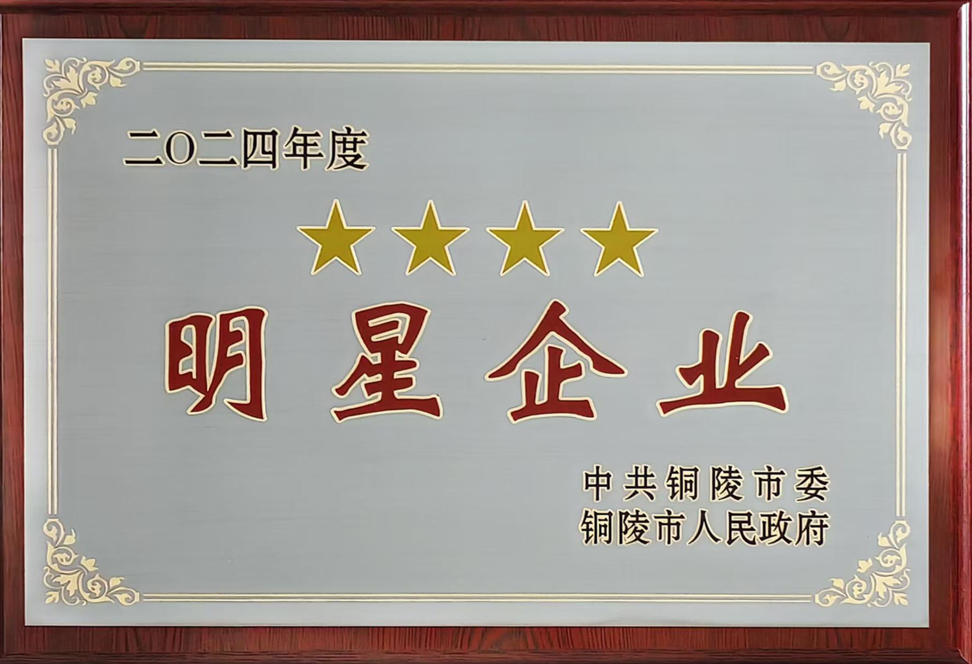 2月6日上午,銅陵市在市行政會(huì)議中心隆重召開“新春第一會(huì)”——全市重大項(xiàng)目提升年暨營(yíng)商環(huán)境深化年動(dòng)員大會(huì)。會(huì)上表彰了2024年度全市突出貢獻(xiàn)單位、星級(jí)企業(yè)(其中工業(yè)類五星企業(yè)6家、四星企業(yè)4家、三星企業(yè)14家)、單項(xiàng)貢獻(xiàn)獎(jiǎng)(其中稅收增長(zhǎng)貢獻(xiàn)獎(jiǎng)8家)等先進(jìn)集體和先進(jìn)個(gè)人。公司首次獲評(píng)“工業(yè)四星企業(yè)”,并獲“稅收增長(zhǎng)貢獻(xiàn)獎(jiǎng)”,這是公司繼多次獲評(píng)“工業(yè)三星企業(yè)”后的又一新突破。公司總經(jīng)理鮑俊華代表公司出席領(lǐng)獎(jiǎng)并在主席臺(tái)就坐。